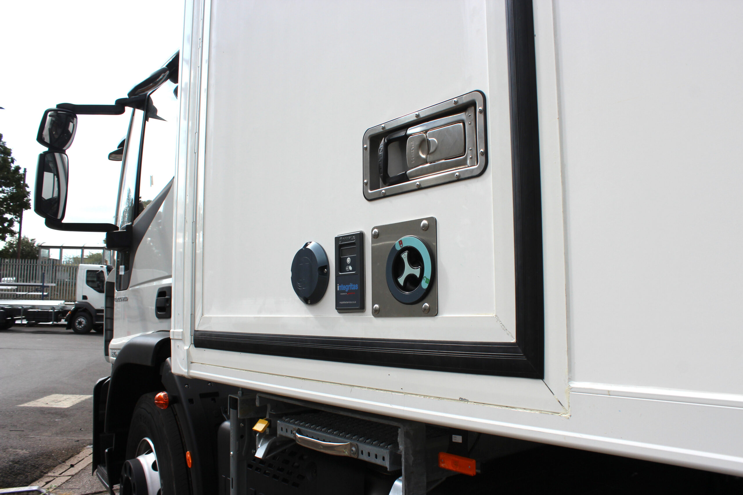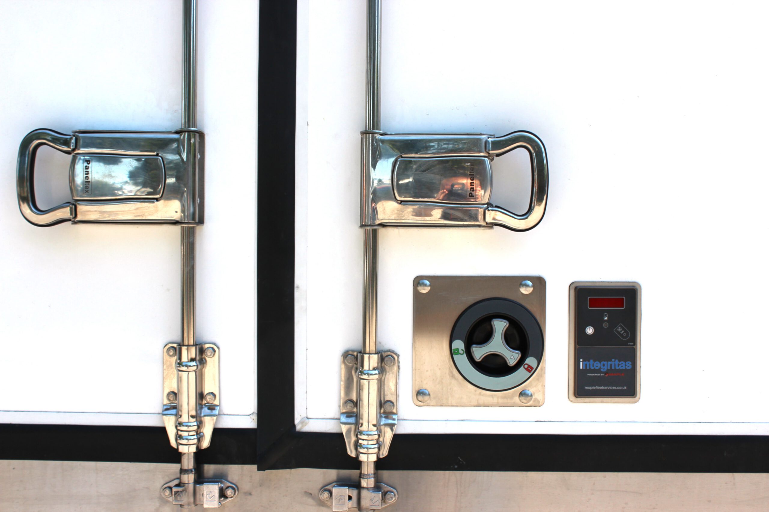 Integritas is an integrated electronic sealing and locking solution designed for barn and hinged doors on trucks and trailers.